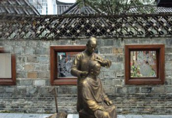 玻璃鋼古人雕塑鍍金庭院剃頭人物