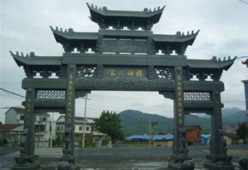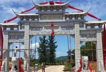 精美仿古斗拱三門牌坊石雕,擺放村口裝點(diǎn)環(huán)境