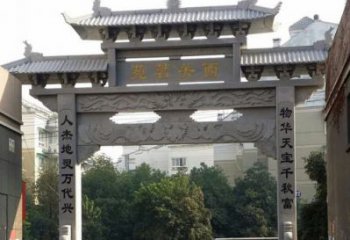 景區(qū)村莊入口擺放青石雕刻牌樓擺件