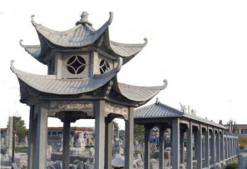 如涼亭雕塑,就是全部以石材仿造木結(jié)構(gòu)的斗拱梁架而建造的。此外,中式?jīng)鐾さ袼芤彩侨绱恕?/p>