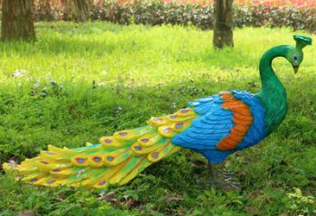 玻璃鋼彩繪孔雀雕塑——宛如草地上行的視覺(jué)盛宴