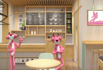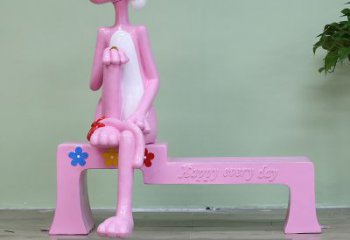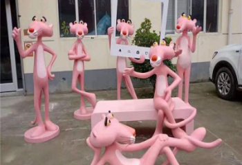 海邊粉紅樹脂豹雕塑捕捉海洋的靈魂