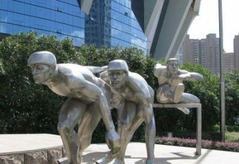 高科技不銹鋼跨欄雕塑裝置,傳承體育運動主題人物